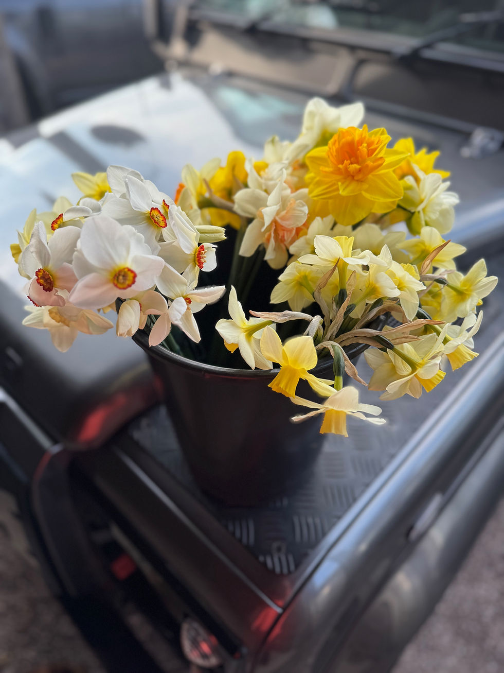 All the flowers are grown personally by me, Felicity or, if neccessary, a fellow local grower. They represent the best seasonal stems and have a greater longevity due to being picked straight from the field to vase. Arrangements are loose, flamboyant and colourful.